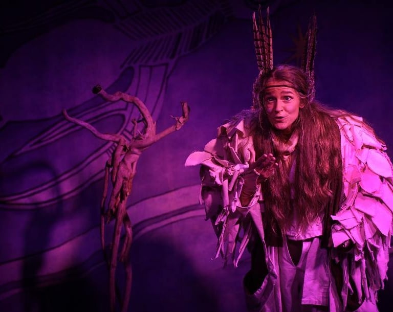 Le décor est formé d'une grande toile peinte par un Amérindien